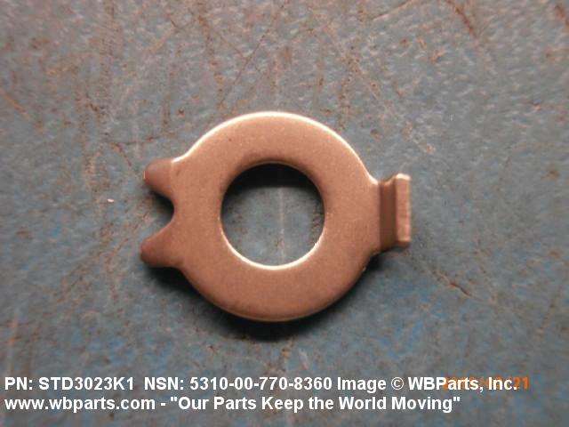 5310-00-770-8360 A washer of nonresilient material usually having two parallel bearing surfaces. The outside and/or inside edges have one or more protuberances. The ends and/or edges may be prebent at any angle or the protuberances may be prebent at any angle to the bearing surfaces. The keys or lugs may be fitted into keyways in adjacent material or they may be bent over after application to hold or lock one or more items in place. Excludes thrust type washer.