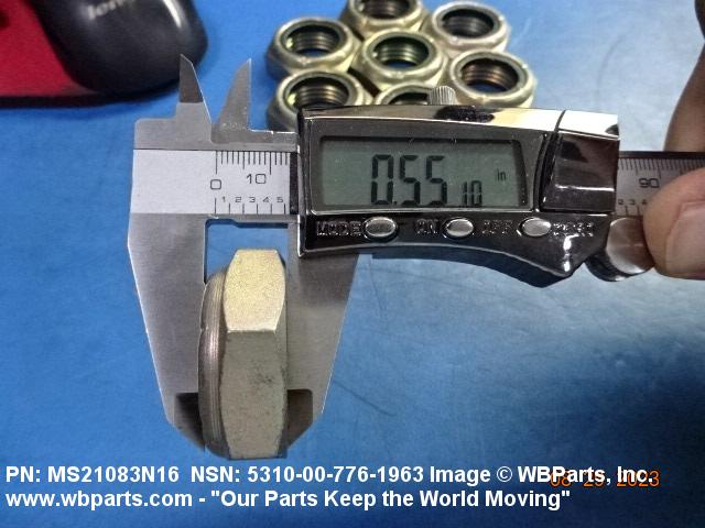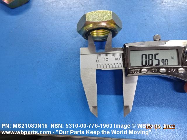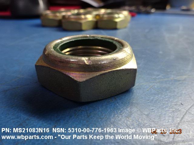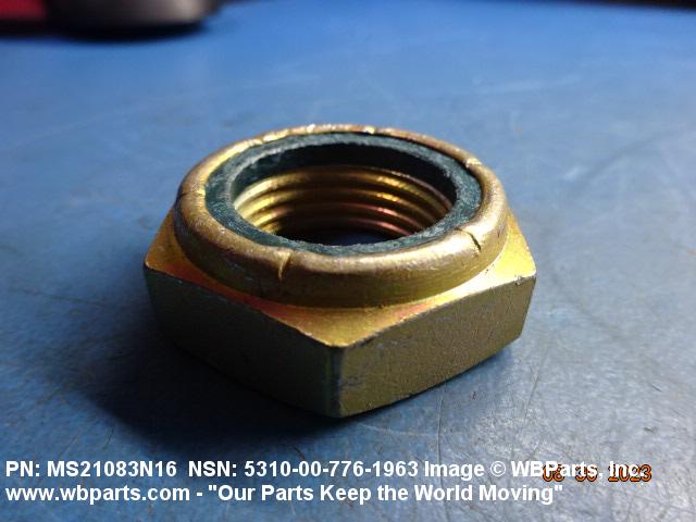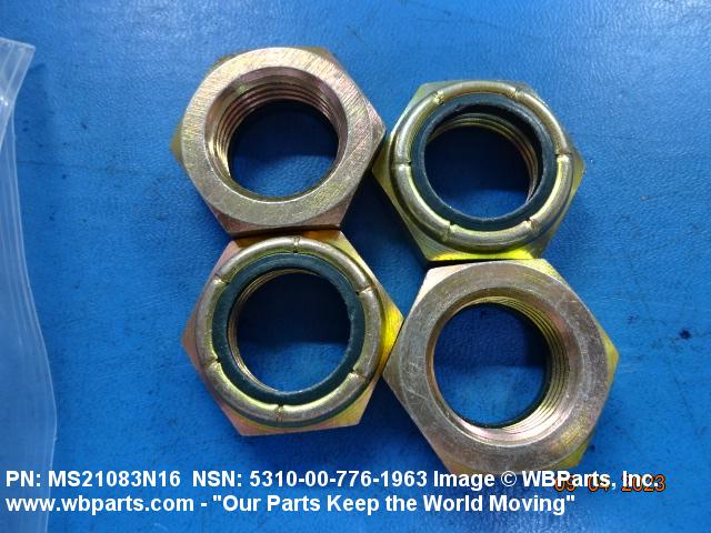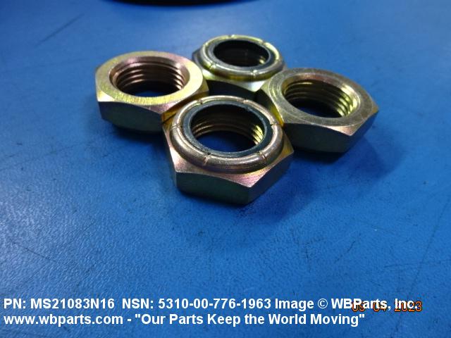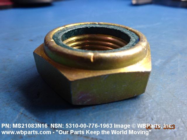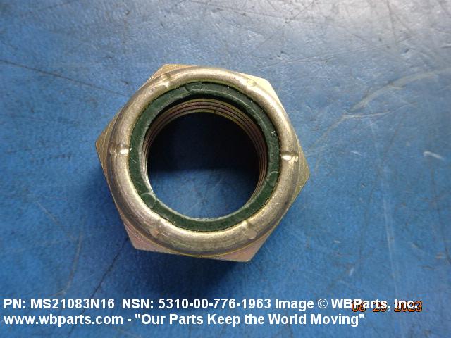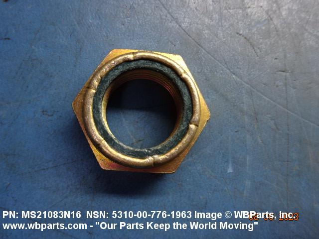 5310-00-776-1963 A nut having a flat bottom and 6 sides. An integral feature is incorporated for locking on the threads of a mating member. Excludes NUT (1), SELF-LOCKING, CAP.