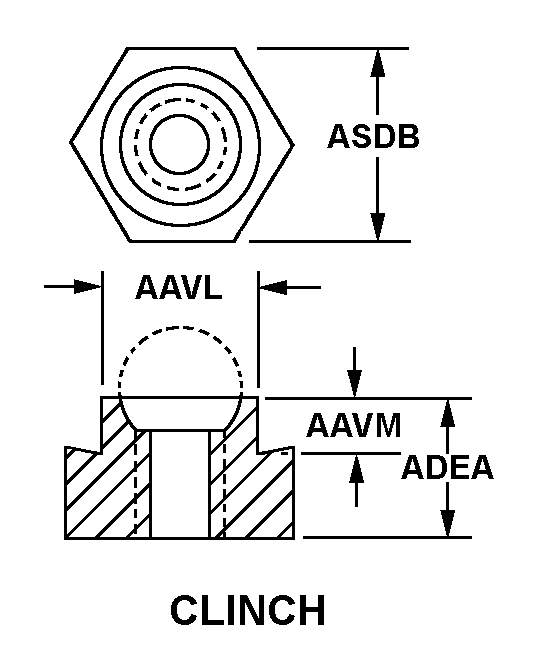 5310-00-779-0971 A nut having a sleeve portion on its under side, which can be crimped or clinched to hold the item in place when inserted in a hole.