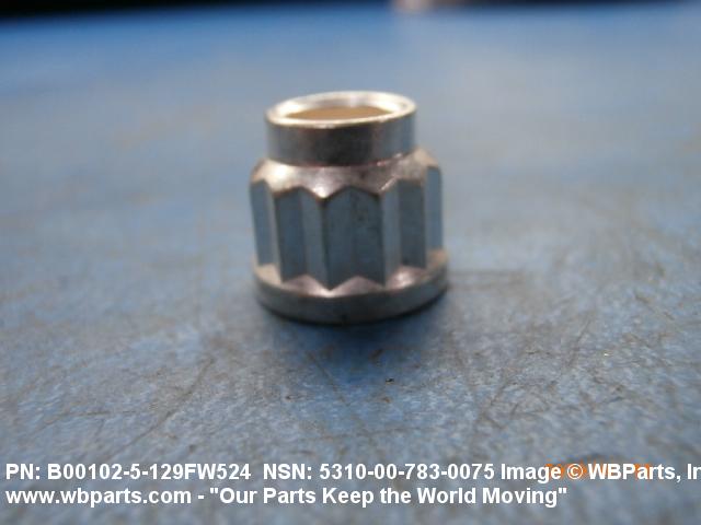 5310-00-783-0075 A nut having 12 drive points, 24 sides, and an integral washer which extends beyond the points or periphery. An integral feature is incorporated for locking on the threads of a mating member.