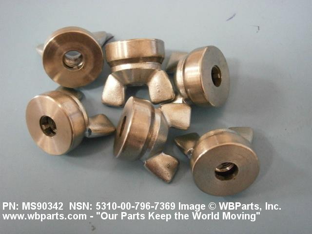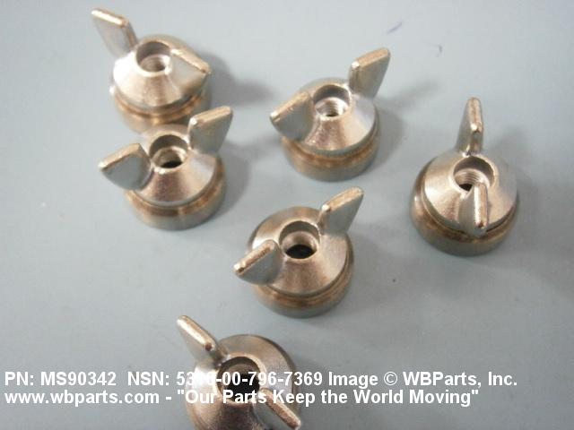 5310-00-796-7369 A nut having wings designed for manual turning without driver or wrench with an integral feature incorporated for locking on the threads of a mating member.