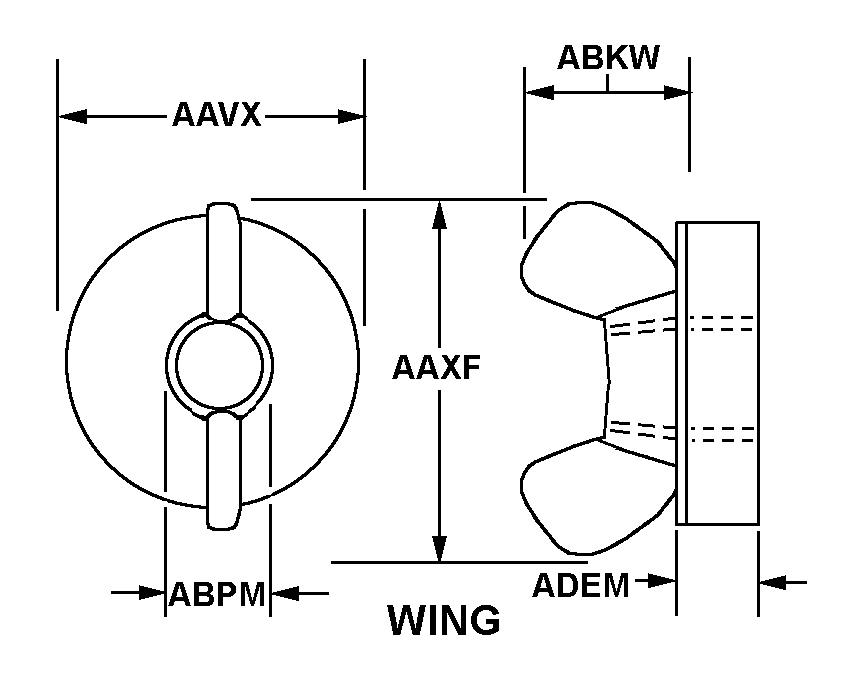 | WING SPREAD WIDTH | 0.970 INCHES MINIMUM AND 1.030 INCHES MAXIMUM |