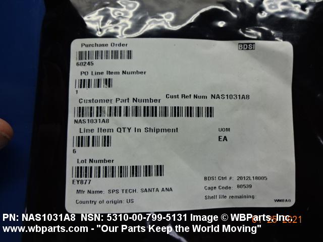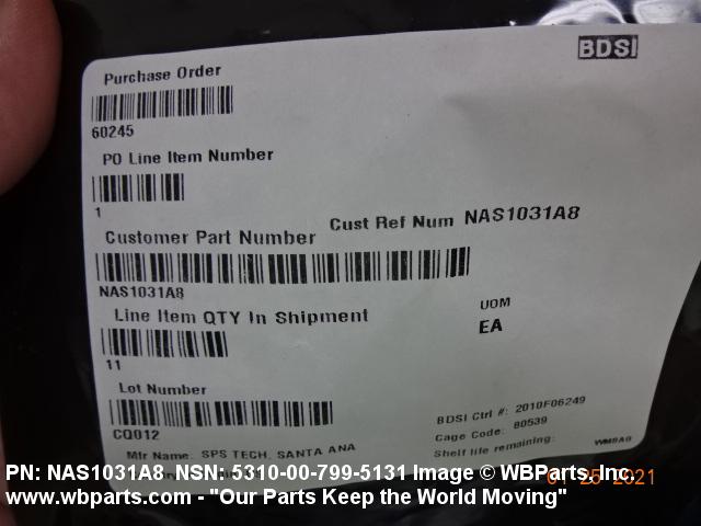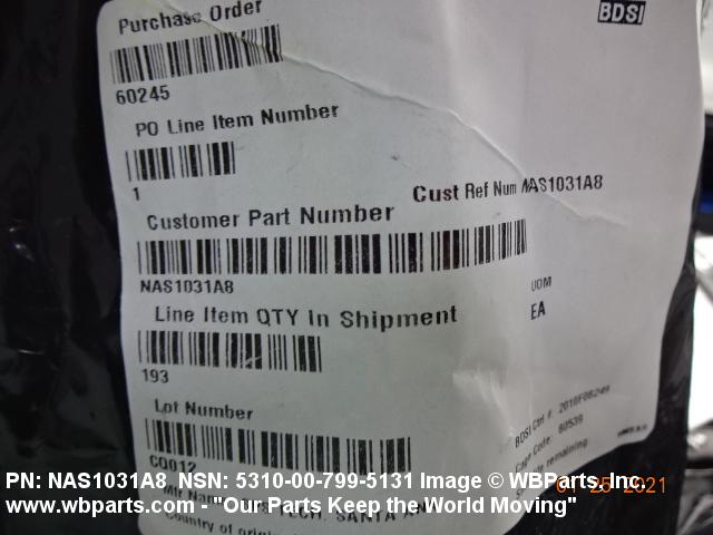 NSN 5310-00-799-5131 NAS1031A8, 8831060, 00-799-5131