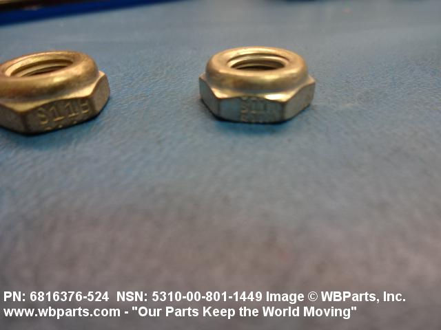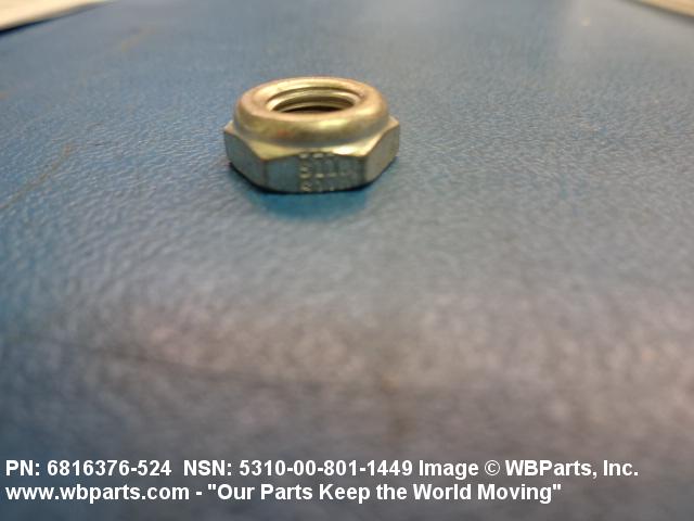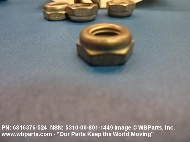 5310-00-801-1449 A nut having a flat bottom and 6 sides. An integral feature is incorporated for locking on the threads of a mating member. Excludes NUT (1), SELF-LOCKING, CAP.