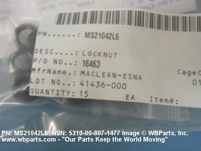 | MS21042L6 | 80539 | SPS TECHNOLOGIES, LLC DBA AEROSPACE FASTENERS GROUP |