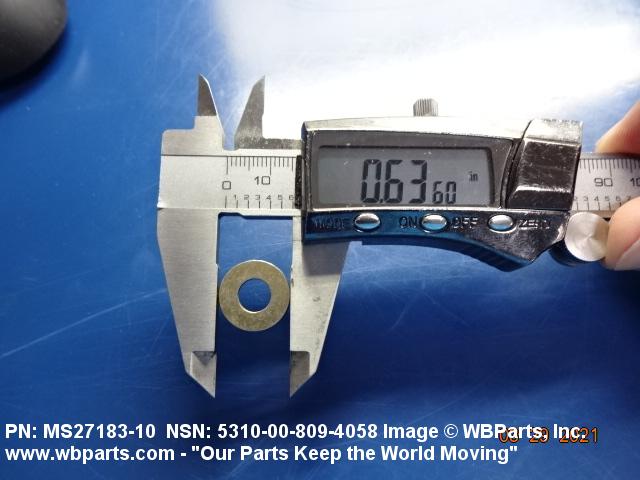 5310-00-809-4058 A washer having a centrally located hole with a solid or laminated cross-section and two flat parallel bearing surfaces. The hole must be 75 percent or less than the largest dimension and the bearing surface finish is greater than 32 microinch (0.8 micrometer). The thickness cannot exceed 25 percent of the largest outside dimension. When the largest outside dimension is less than 1/4 inch or 6mm, the thickness must be 0.006 inches (0.15mm) or greater and for items 1/4 inch (6mm) or larger, the thickness must be 0.016 inches (0.4mm) or greater. The maximum tolerance is applied to dimensions and used as a determining factor. Items with separable lamination use SHIM. For items fabricated from ceramic or electrically rated materials by specification or industry standards use INSULATOR (1), WASHER. Excludes DISK, VALVE, graphite impregnated and lubricated items.