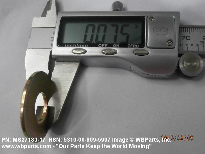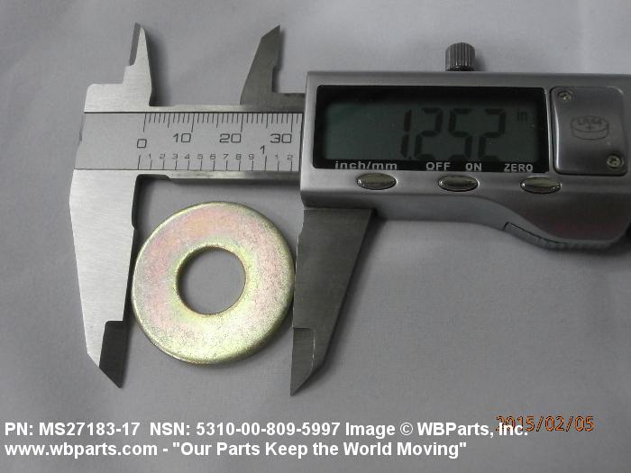 5310-00-809-5997 A washer having a centrally located hole with a solid or laminated cross-section and two flat parallel bearing surfaces. The hole must be 75 percent or less than the largest dimension and the bearing surface finish is greater than 32 microinch (0.8 micrometer). The thickness cannot exceed 25 percent of the largest outside dimension. When the largest outside dimension is less than 1/4 inch or 6mm, the thickness must be 0.006 inches (0.15mm) or greater and for items 1/4 inch (6mm) or larger, the thickness must be 0.016 inches (0.4mm) or greater. The maximum tolerance is applied to dimensions and used as a determining factor. Items with separable lamination use SHIM. For items fabricated from ceramic or electrically rated materials by specification or industry standards use INSULATOR (1), WASHER. Excludes DISK, VALVE, graphite impregnated and lubricated items.