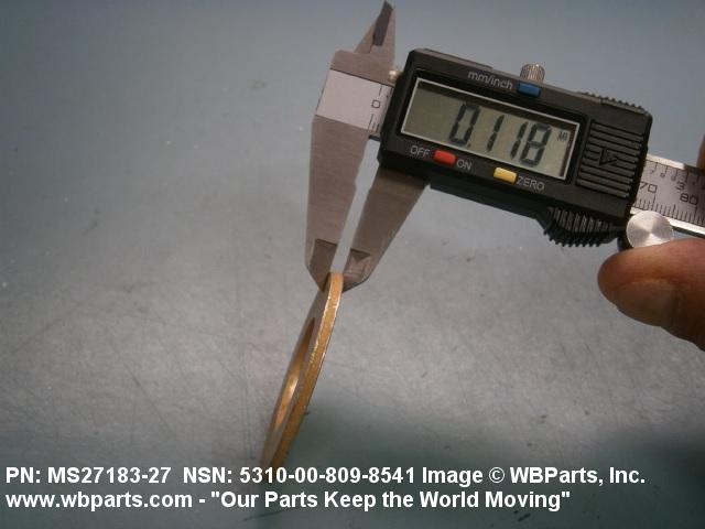 5310-00-809-8541 A washer having a centrally located hole with a solid or laminated cross-section and two flat parallel bearing surfaces. The hole must be 75 percent or less than the largest dimension and the bearing surface finish is greater than 32 microinch (0.8 micrometer). The thickness cannot exceed 25 percent of the largest outside dimension. When the largest outside dimension is less than 1/4 inch or 6mm, the thickness must be 0.006 inches (0.15mm) or greater and for items 1/4 inch (6mm) or larger, the thickness must be 0.016 inches (0.4mm) or greater. The maximum tolerance is applied to dimensions and used as a determining factor. Items with separable lamination use SHIM. For items fabricated from ceramic or electrically rated materials by specification or industry standards use INSULATOR (1), WASHER. Excludes DISK, VALVE, graphite impregnated and lubricated items.