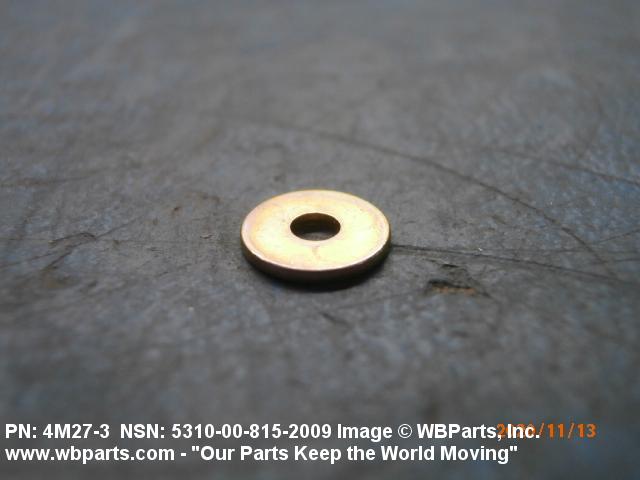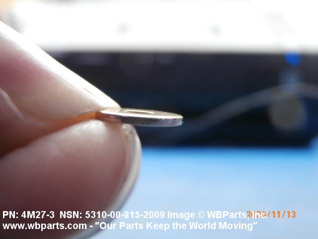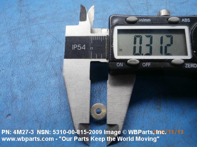 5310-00-815-2009 A washer having a centrally located hole with a solid or laminated cross-section and two flat parallel bearing surfaces. The hole must be 75 percent or less than the largest dimension and the bearing surface finish is greater than 32 microinch (0.8 micrometer). The thickness cannot exceed 25 percent of the largest outside dimension. When the largest outside dimension is less than 1/4 inch or 6mm, the thickness must be 0.006 inches (0.15mm) or greater and for items 1/4 inch (6mm) or larger, the thickness must be 0.016 inches (0.4mm) or greater. The maximum tolerance is applied to dimensions and used as a determining factor. Items with separable lamination use SHIM. For items fabricated from ceramic or electrically rated materials by specification or industry standards use INSULATOR (1), WASHER. Excludes DISK, VALVE, graphite impregnated and lubricated items.