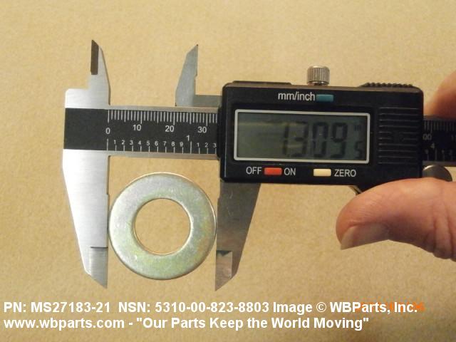 5310-00-823-8803 A washer having a centrally located hole with a solid or laminated cross-section and two flat parallel bearing surfaces. The hole must be 75 percent or less than the largest dimension and the bearing surface finish is greater than 32 microinch (0.8 micrometer). The thickness cannot exceed 25 percent of the largest outside dimension. When the largest outside dimension is less than 1/4 inch or 6mm, the thickness must be 0.006 inches (0.15mm) or greater and for items 1/4 inch (6mm) or larger, the thickness must be 0.016 inches (0.4mm) or greater. The maximum tolerance is applied to dimensions and used as a determining factor. Items with separable lamination use SHIM. For items fabricated from ceramic or electrically rated materials by specification or industry standards use INSULATOR (1), WASHER. Excludes DISK, VALVE, graphite impregnated and lubricated items.