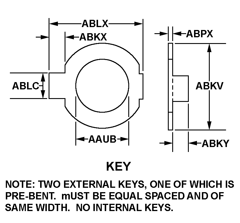 | EXTERNAL PREBENT KEY LENGTH | 0.075 INCHES MINIMUM AND 0.105 INCHES MAXIMUM |