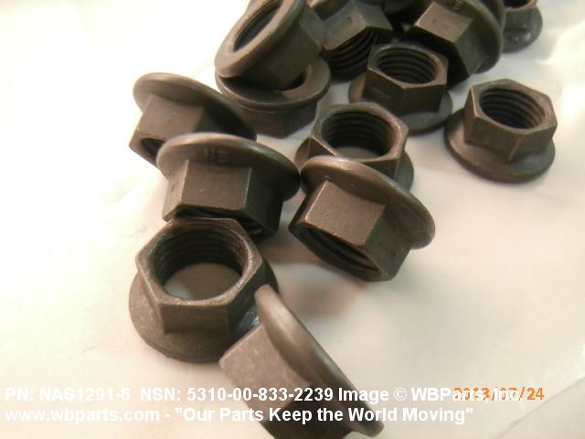 5310-00-833-2239 A nut having 6 flat sides and an integral washer which extends beyond the flats or periphery. An integral feature is incorporated for locking on the threads of a mating member.
