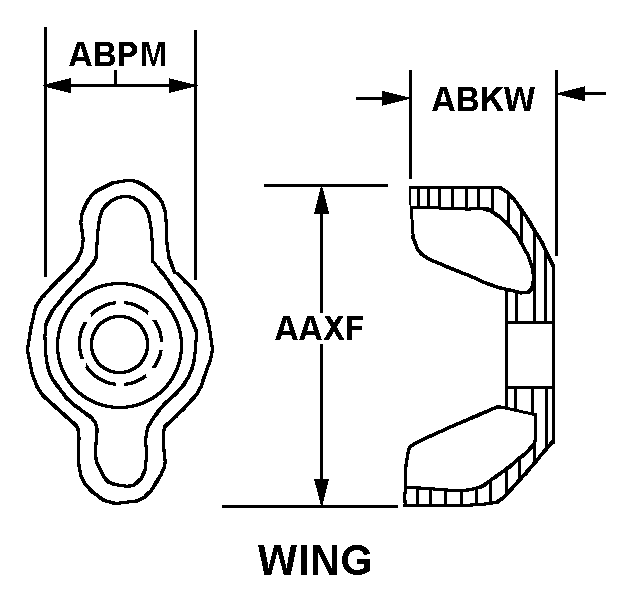 5310-00-833-3527 A nut having wings designed for manual turning without driver or wrench.