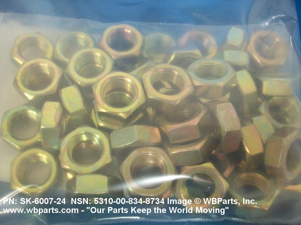 5310-00-834-8734 A nut, flat on top and bottom having 6 flat sides. For items which have internal tapered or straight (parallel) pipe threads, specific electrical conduit size designation, and which when installed, provide a method of tightening to lock the connection, see LOCKNUT, ELECTRICAL CONDUIT. See also LOCKNUT, TUBE FITTING. For items having a thickness (or height) exceeding two times the width across the flats, use POST, ELECTRICAL-MECHANICAL EQUIPMENT. (When height or thickness and/or width across the flats is designated as a tolerance dimension, the maximum dimension will be used to determine compliance.