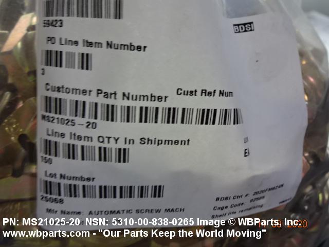 NSN 5310-00-838-0265 MS2102520, MS21025-20, FFN836