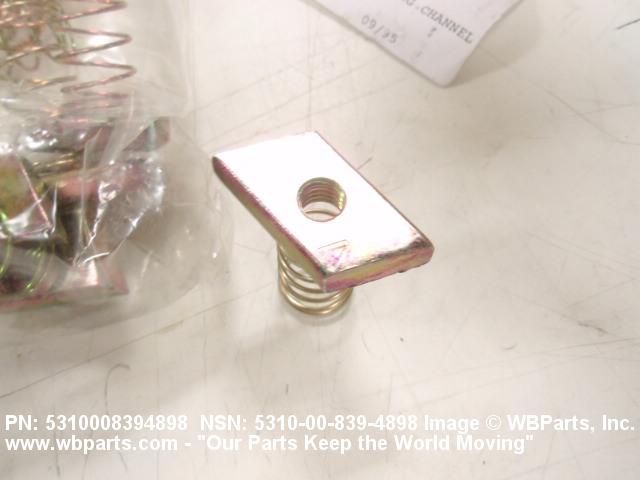 5310-00-839-4898 A nut having ears or lugs designed to hold it in position after its installation in a specially designed channel. An integral feature is incorporated for locking on the threads of a mating member.