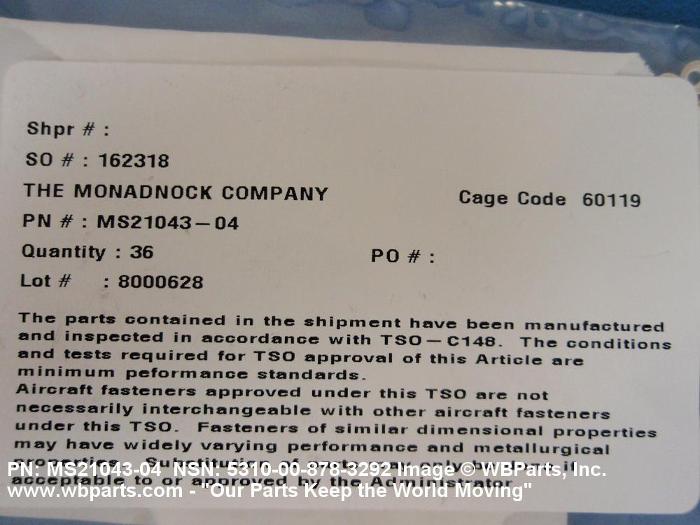 | MS21043-04 | 80205 | NATIONAL AEROSPACE STANDARDS COMMITTEE AEROSPACE INDUSTRIES |