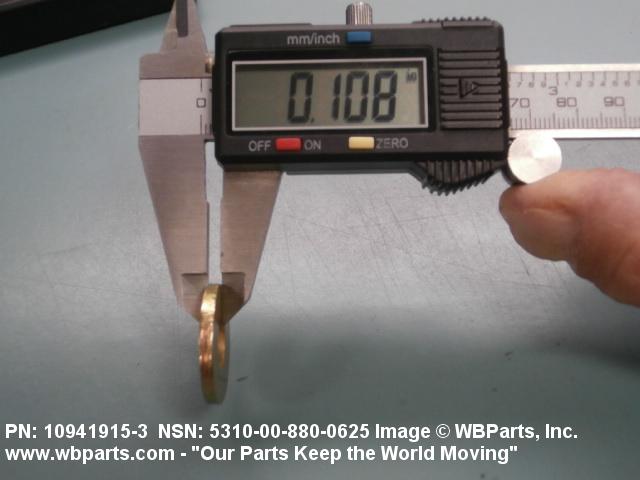 5310-00-880-0625 A washer having a centrally located hole with a solid or laminated cross-section and two flat parallel bearing surfaces. The hole must be 75 percent or less than the largest dimension and the bearing surface finish is greater than 32 microinch (0.8 micrometer). The thickness cannot exceed 25 percent of the largest outside dimension. When the largest outside dimension is less than 1/4 inch or 6mm, the thickness must be 0.006 inches (0.15mm) or greater and for items 1/4 inch (6mm) or larger, the thickness must be 0.016 inches (0.4mm) or greater. The maximum tolerance is applied to dimensions and used as a determining factor. Items with separable lamination use SHIM. For items fabricated from ceramic or electrically rated materials by specification or industry standards use INSULATOR (1), WASHER. Excludes DISK, VALVE, graphite impregnated and lubricated items.