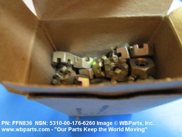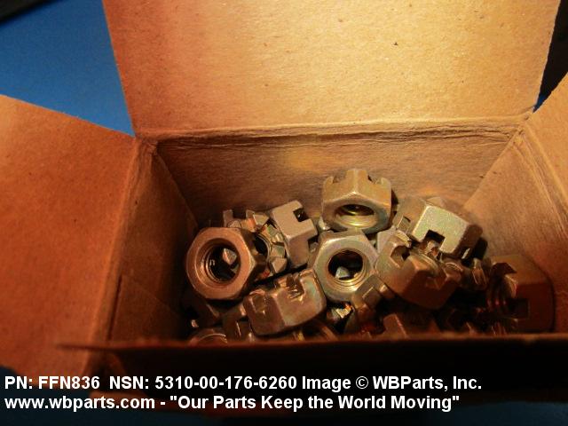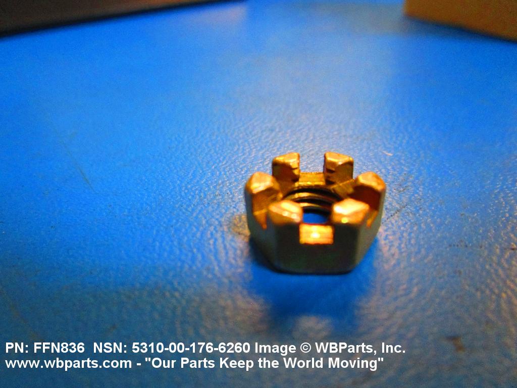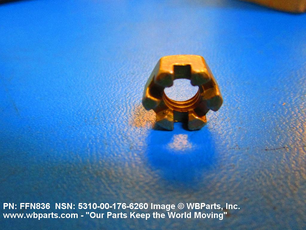 5310-00-899-1939 A nut having a flat bearing surface and 6 flat sides with slots in its upper portion. It is designed to provide positive locking when used with a solid or split (cotter) pin. Excludes NUT (1), PLAIN, CASTELLATED, HEXAGON.