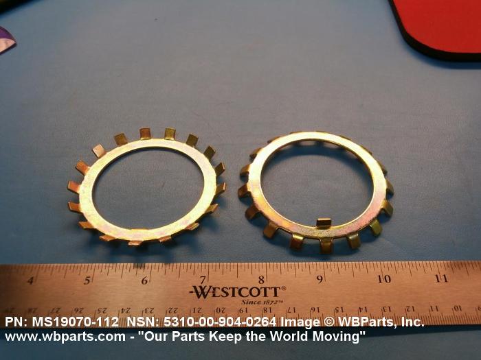 5310-00-904-0264 A washer of nonresilient material usually having two parallel bearing surfaces. The outside and/or inside edges have one or more protuberances. The ends and/or edges may be prebent at any angle or the protuberances may be prebent at any angle to the bearing surfaces. The keys or lugs may be fitted into keyways in adjacent material or they may be bent over after application to hold or lock one or more items in place. Excludes thrust type washer.