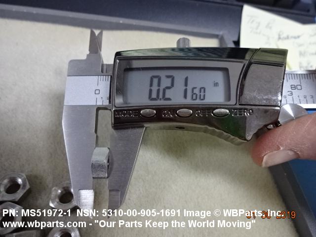 5310-00-905-1691 A nut, flat on top and bottom having 6 flat sides. For items which have internal tapered or straight (parallel) pipe threads, specific electrical conduit size designation, and which when installed, provide a method of tightening to lock the connection, see LOCKNUT, ELECTRICAL CONDUIT. See also LOCKNUT, TUBE FITTING. For items having a thickness (or height) exceeding two times the width across the flats, use POST, ELECTRICAL-MECHANICAL EQUIPMENT. (When height or thickness and/or width across the flats is designated as a tolerance dimension, the maximum dimension will be used to determine compliance.