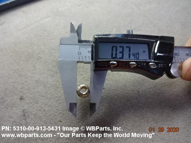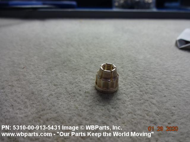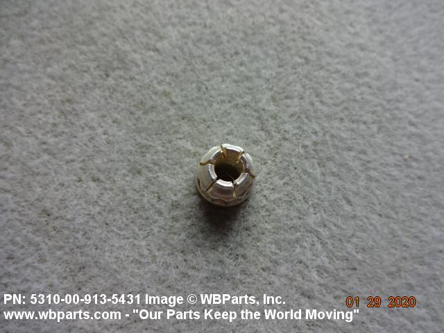 5310-00-913-5431 A nut having 12 drive points, 24 sides, and an integral washer which extends beyond the points or periphery. An integral feature is incorporated for locking on the threads of a mating member.