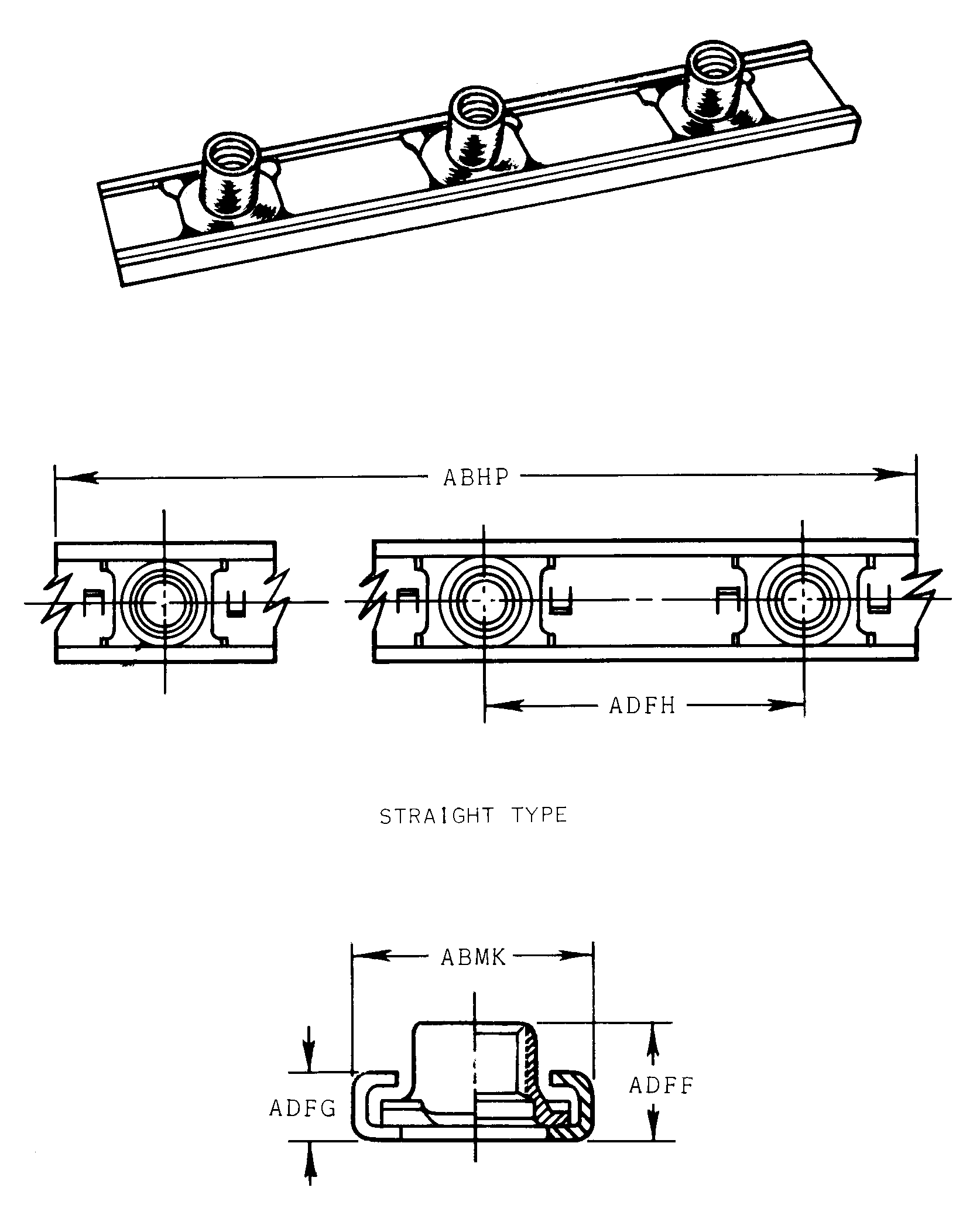 5310-00-915-7970 An item composed of a specially designed channel and a series of nuts having integral self-locking features assembled in predetermined spacing.