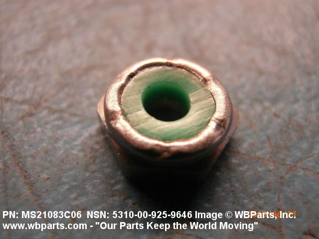 5310-00-925-9646 A nut having a flat bottom and 6 sides. An integral feature is incorporated for locking on the threads of a mating member. Excludes NUT (1), SELF-LOCKING, CAP.