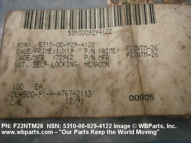 NSN 5310-00-929-4122 F22NTM26, 22NTM25, 22NTM-25