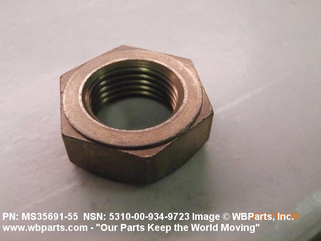 5310-00-934-9723 A nut, flat on top and bottom having 6 flat sides. For items which have internal tapered or straight (parallel) pipe threads, specific electrical conduit size designation, and which when installed, provide a method of tightening to lock the connection, see LOCKNUT, ELECTRICAL CONDUIT. See also LOCKNUT, TUBE FITTING. For items having a thickness (or height) exceeding two times the width across the flats, use POST, ELECTRICAL-MECHANICAL EQUIPMENT. (When height or thickness and/or width across the flats is designated as a tolerance dimension, the maximum dimension will be used to determine compliance.