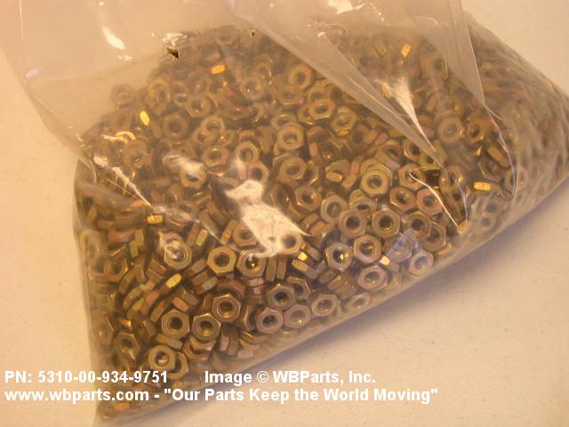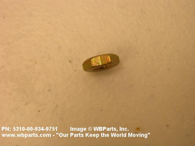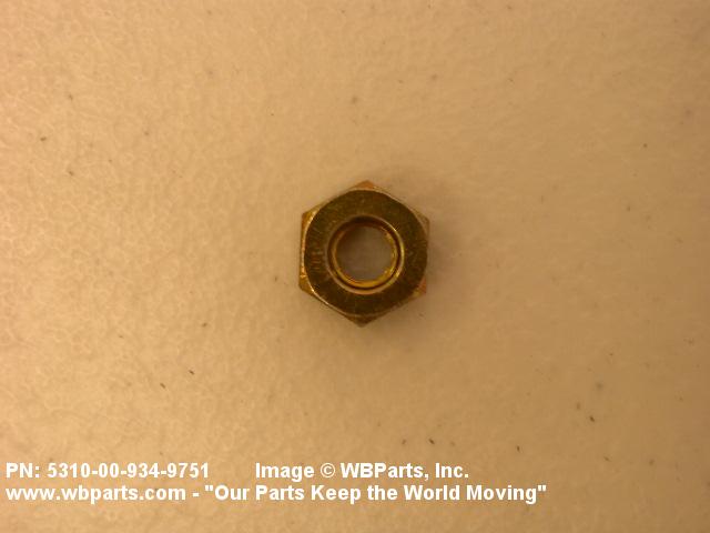 5310-00-934-9751 A nut, flat on top and bottom having 6 flat sides. For items which have internal tapered or straight (parallel) pipe threads, specific electrical conduit size designation, and which when installed, provide a method of tightening to lock the connection, see LOCKNUT, ELECTRICAL CONDUIT. See also LOCKNUT, TUBE FITTING. For items having a thickness (or height) exceeding two times the width across the flats, use POST, ELECTRICAL-MECHANICAL EQUIPMENT. (When height or thickness and/or width across the flats is designated as a tolerance dimension, the maximum dimension will be used to determine compliance.