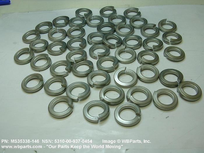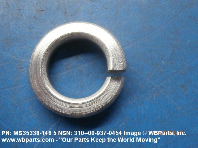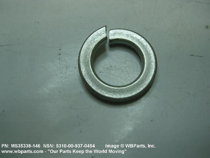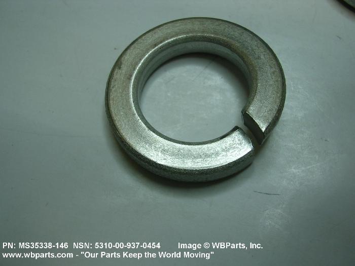5310-00-937-0454 A washer which is usually round with a centrally located hole. Its edges and two bearing surfaces are so designed that applied pressure brings into play the spring tension and/or frictional locking principle which materially resists any tendency toward turning. It may be made of one or two pieces