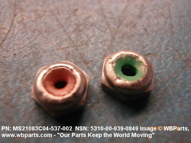 5310-00-939-0849 A nut having a flat bottom and 6 sides. An integral feature is incorporated for locking on the threads of a mating member. Excludes NUT (1), SELF-LOCKING, CAP.