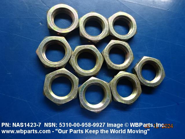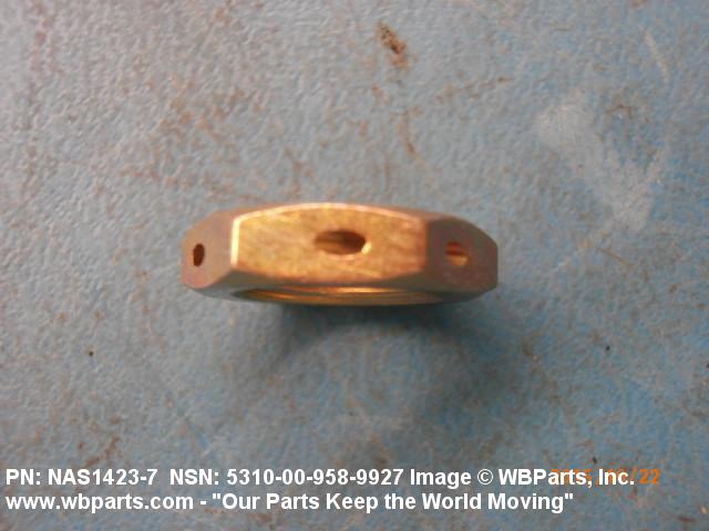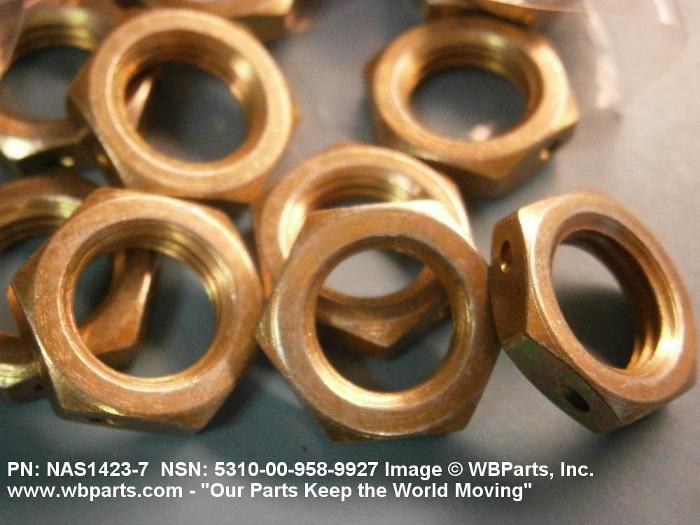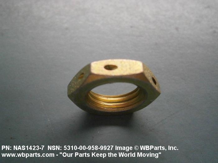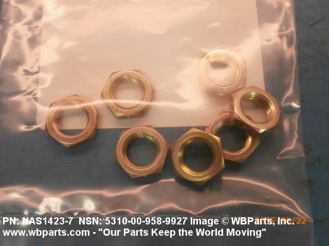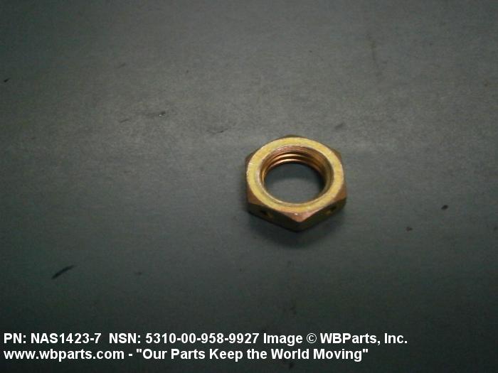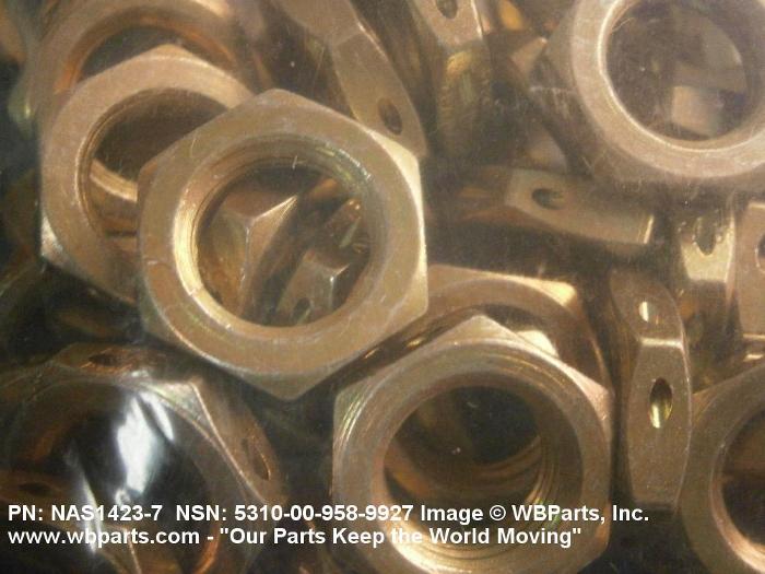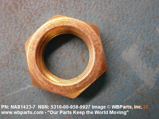 5310-00-958-9927 A nut, flat on top and bottom having 6 flat sides. For items which have internal tapered or straight (parallel) pipe threads, specific electrical conduit size designation, and which when installed, provide a method of tightening to lock the connection, see LOCKNUT, ELECTRICAL CONDUIT. See also LOCKNUT, TUBE FITTING. For items having a thickness (or height) exceeding two times the width across the flats, use POST, ELECTRICAL-MECHANICAL EQUIPMENT. (When height or thickness and/or width across the flats is designated as a tolerance dimension, the maximum dimension will be used to determine compliance.