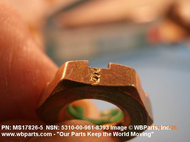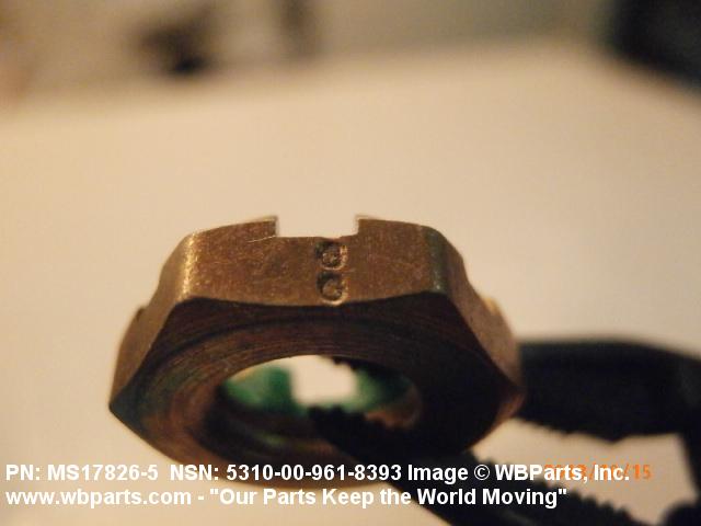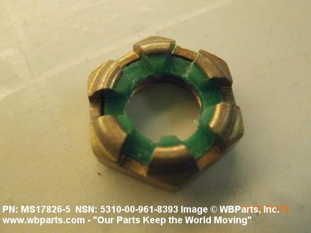 5310-00-961-8393 A nut having a flat bearing surface and 6 flat sides with slots in its upper portion. An integral feature is incorporated for locking on the threads of a mating member. The slots, when used in conjunction with a solid or split (cotter) pin, act as an extra "fail safe", feature in critical applications. Excludes NUT (1), SELF-LOCKING, CASTELLATED, OCTAGON.