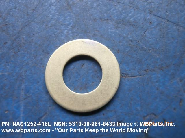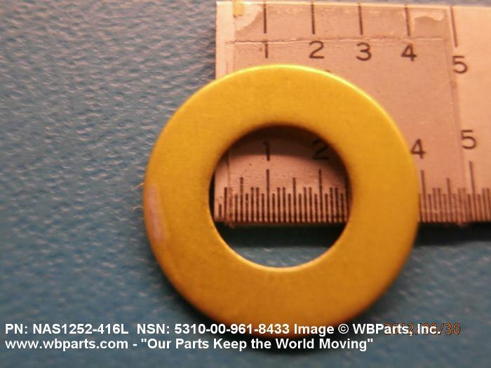 5310-00-961-8433 A washer having a centrally located hole with a solid or laminated cross-section and two flat parallel bearing surfaces. The hole must be 75 percent or less than the largest dimension and the bearing surface finish is greater than 32 microinch (0.8 micrometer). The thickness cannot exceed 25 percent of the largest outside dimension. When the largest outside dimension is less than 1/4 inch or 6mm, the thickness must be 0.006 inches (0.15mm) or greater and for items 1/4 inch (6mm) or larger, the thickness must be 0.016 inches (0.4mm) or greater. The maximum tolerance is applied to dimensions and used as a determining factor. Items with separable lamination use SHIM. For items fabricated from ceramic or electrically rated materials by specification or industry standards use INSULATOR (1), WASHER. Excludes DISK, VALVE, graphite impregnated and lubricated items.