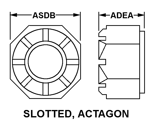 5310-00-964-0103 A nut having a flat bearing surface and 8 flat sides with slots in its upper portion. It is designed to provide positive locking when used with a solid or split (cotter) pin. Excludes NUT (1), PLAIN, CASTELLATED, OCTAGON.