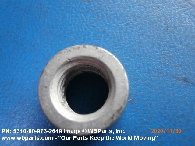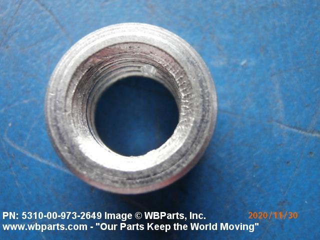 5310-00-973-2649 A nut, circular in shape, which may have wrenching facilities such as flats, holes, protrusions, slots or splines in or on the periphery or in the face opposite the bearing surface. For items having a thickness (or height) exceeding two times the outside diameter, use POST, ELECTRICAL-MECHANICAL EQUIPMENT. See also NUT (1), PLAIN, KNURLED. (When height or thickness and/or outside diameter is designated as a tolerance dimension, the maximum dimension will be used to determine compliance.