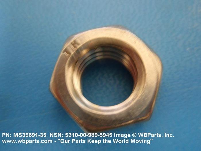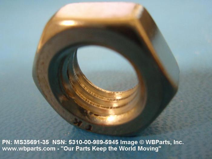 5310-00-989-5945 A nut, flat on top and bottom having 6 flat sides. For items which have internal tapered or straight (parallel) pipe threads, specific electrical conduit size designation, and which when installed, provide a method of tightening to lock the connection, see LOCKNUT, ELECTRICAL CONDUIT. See also LOCKNUT, TUBE FITTING. For items having a thickness (or height) exceeding two times the width across the flats, use POST, ELECTRICAL-MECHANICAL EQUIPMENT. (When height or thickness and/or width across the flats is designated as a tolerance dimension, the maximum dimension will be used to determine compliance.