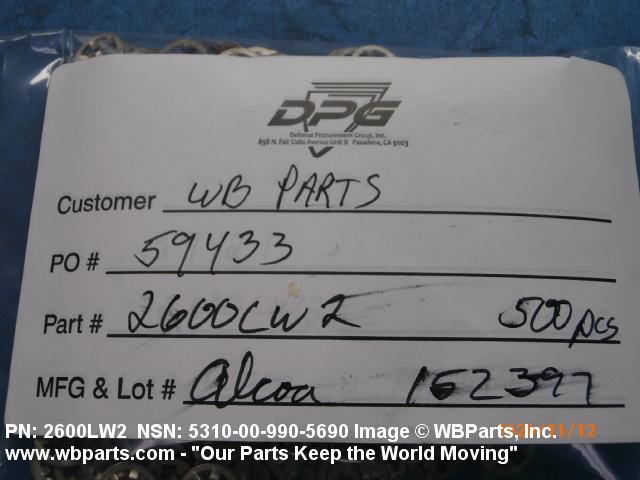 NSN 5310-00-990-5690 2600LW2, 00-990-5690, 009905690