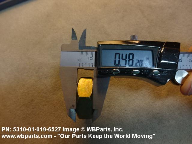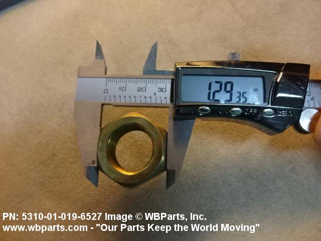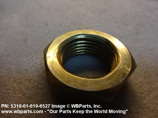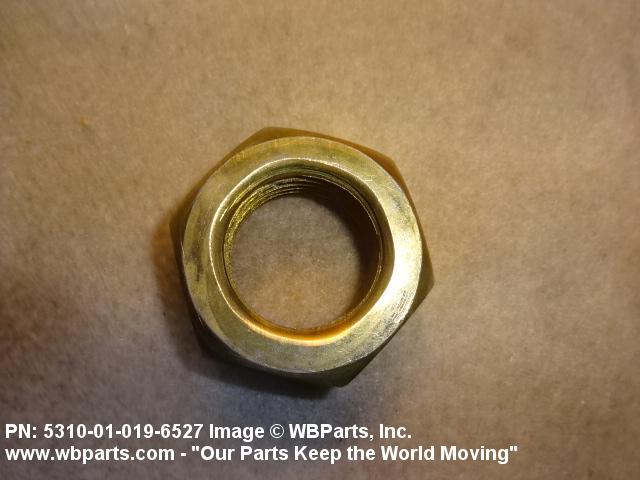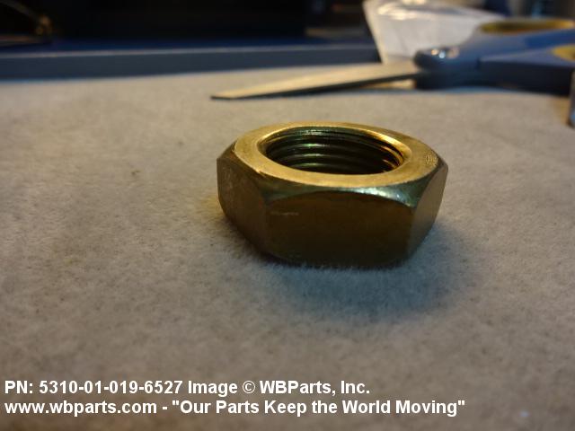 5310-01-019-6527 A nut, flat on top and bottom having 6 flat sides. For items which have internal tapered or straight (parallel) pipe threads, specific electrical conduit size designation, and which when installed, provide a method of tightening to lock the connection, see LOCKNUT, ELECTRICAL CONDUIT. See also LOCKNUT, TUBE FITTING. For items having a thickness (or height) exceeding two times the width across the flats, use POST, ELECTRICAL-MECHANICAL EQUIPMENT. (When height or thickness and/or width across the flats is designated as a tolerance dimension, the maximum dimension will be used to determine compliance.