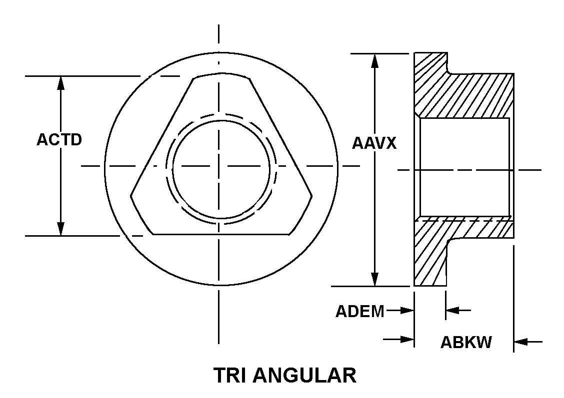 5310-01-020-7011 An item having three equiangular flat sides and an integral washer extending beyond the flats or periphery.