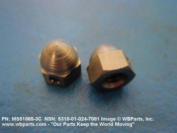 5310-01-024-7081 A nut internally threaded from one end, and completely enclosed on the opposite end. The outer periphery parallel to the threaded axis may be square, cylindrical, hexagonal, octagonal, dodecagonal or the like and taper to a cone or dome shape on the closed end. An integral feature is incorporated for locking on the threads of a mating memeber. Excludes NUT (1), STAMPED.