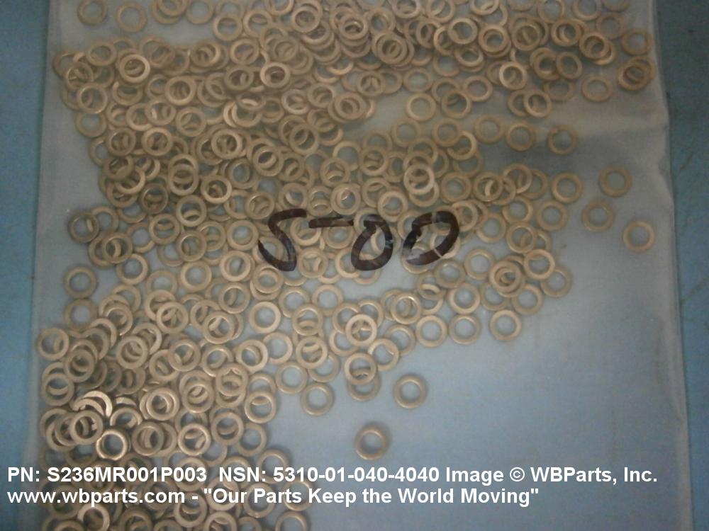 5310-01-040-4040 A washer having a centrally located hole with a solid or laminated cross-section and two flat parallel bearing surfaces. The hole must be 75 percent or less than the largest dimension and the bearing surface finish is greater than 32 microinch (0.8 micrometer). The thickness cannot exceed 25 percent of the largest outside dimension. When the largest outside dimension is less than 1/4 inch or 6mm, the thickness must be 0.006 inches (0.15mm) or greater and for items 1/4 inch (6mm) or larger, the thickness must be 0.016 inches (0.4mm) or greater. The maximum tolerance is applied to dimensions and used as a determining factor. Items with separable lamination use SHIM. For items fabricated from ceramic or electrically rated materials by specification or industry standards use INSULATOR (1), WASHER. Excludes DISK, VALVE, graphite impregnated and lubricated items.