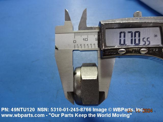 5310-01-056-5117 A nut having a flat bottom and 6 sides. An integral feature is incorporated for locking on the threads of a mating member. Excludes NUT (1), SELF-LOCKING, CAP.