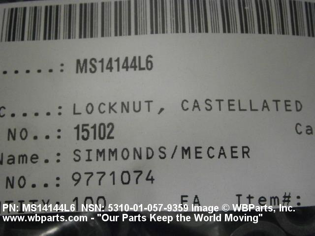 | MS14144L6 | 80205 | NATIONAL AEROSPACE STANDARDS COMMITTEE AEROSPACE INDUSTRIES |