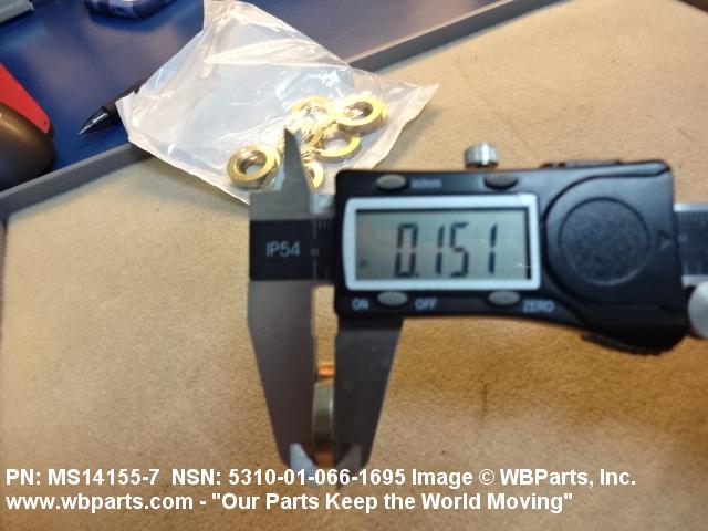 5310-01-066-1695 A washer of any peripheral shape having a centrally located hole. Both bearing surfaces are parallel and flat, but one or both of the bearing surfaces must be broken by a counterbore, countersink, or similarly shaped recess. The thickness must not exceed 25 per cent of the outside diameter or the largest outside dimension. The maximum limit of the tolerance or range applied to the thickness and/or largest outside dimension must be used to determine compliance. Excludes WASHER, CONCAVE, RETAINER, PACKING, and thrust type washers. See also SPACER, SLEEVE; and SPACER, STEPPED.