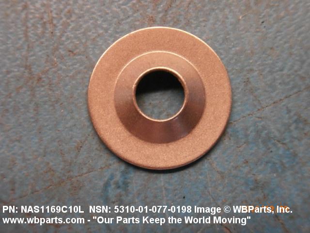 5310-01-077-0198 A washer or cone or disk shape with a centrally located hole, designed to accommodate a flat or oval head screw and provide additional bearing area on the material being fastened. It may or may not have a flush flange feature.