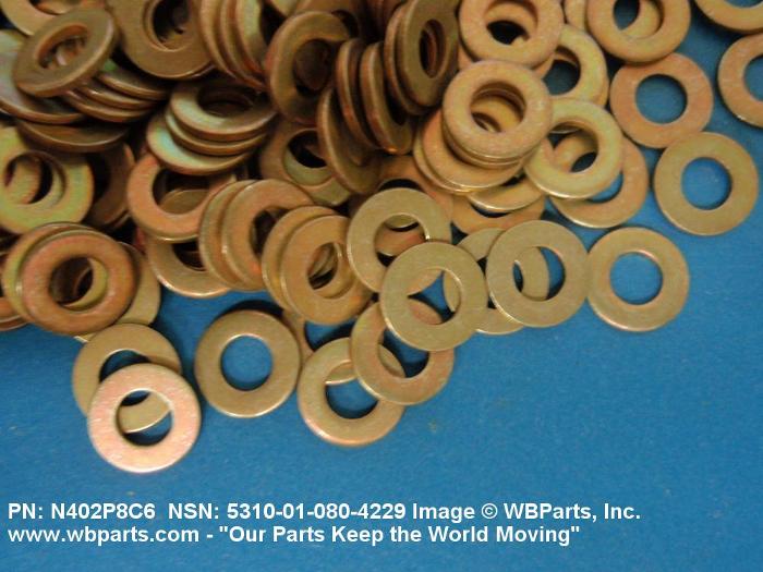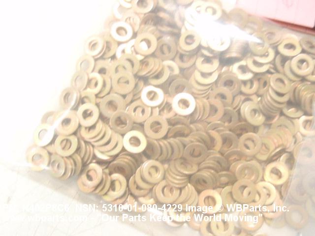 5310-01-080-4229 A washer having a centrally located hole with a solid or laminated cross-section and two flat parallel bearing surfaces. The hole must be 75 percent or less than the largest dimension and the bearing surface finish is greater than 32 microinch (0.8 micrometer). The thickness cannot exceed 25 percent of the largest outside dimension. When the largest outside dimension is less than 1/4 inch or 6mm, the thickness must be 0.006 inches (0.15mm) or greater and for items 1/4 inch (6mm) or larger, the thickness must be 0.016 inches (0.4mm) or greater. The maximum tolerance is applied to dimensions and used as a determining factor. Items with separable lamination use SHIM. For items fabricated from ceramic or electrically rated materials by specification or industry standards use INSULATOR (1), WASHER. Excludes DISK, VALVE, graphite impregnated and lubricated items.
