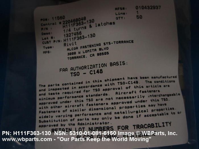 NSN 5310-01-081-6150 H111F363130, H111F363-130, 8033358